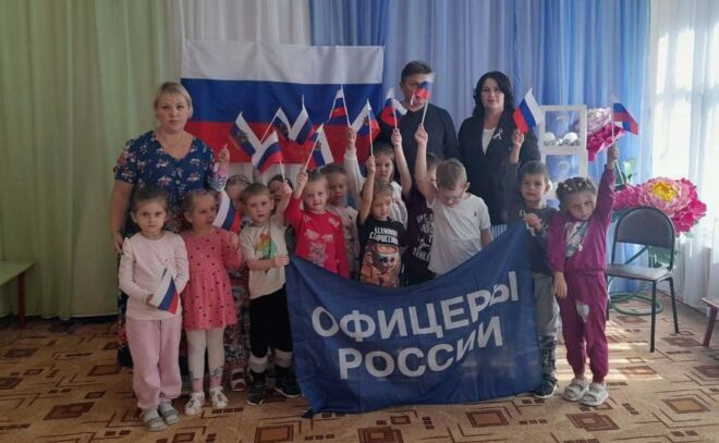 Евгений Александрович по приглашению исполняющей обязанности заведующей детским садом, члена организации «ОФИЦЕРЫ РОССИИ» Анастасии Мусиной провел для воспитанников патриотическое мероприятие.