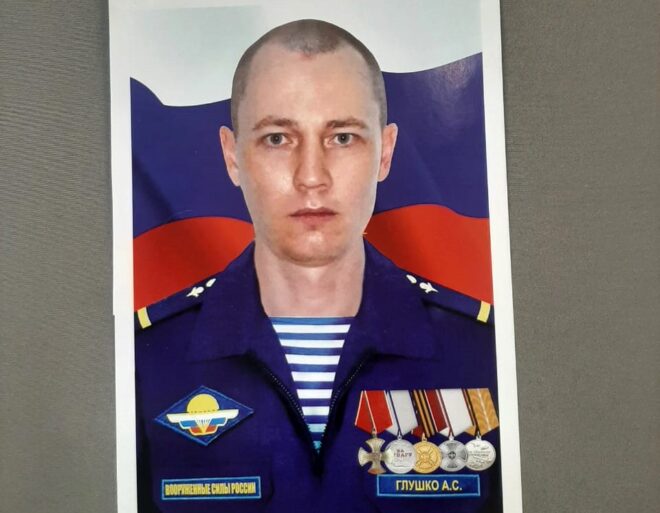 Стенд посвящен участнику специальной военной операции, военнослужащему 98-й гвардейской воздушно-десантной дивизии, кавалеру ордена Мужества (посмертно) гвардии ефрейтору Алексею Сергеевичу Глушко. За героизм и самоотверженность десантник также награжден медалями «За отвагу», «За храбрость» 1 и 2 степени и другими наградами.