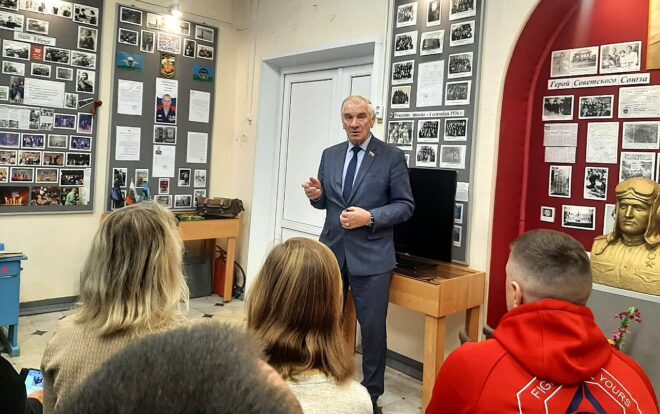 Кроме того, в ходе мероприятия в фонд школьного музея были переданы на вечное хранение государственные награды участника Великой Отечественной войны, артиллериста Федора Дмитриевича Донцова. Это символический мост между поколениями защитников Отечества.